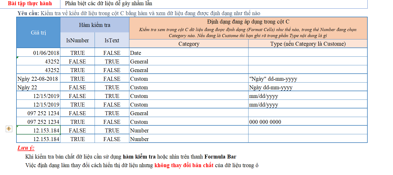 Dạ vâng Gitiho xin giải đáp thắc mắc của Anh/Chị là ở type ô chưa 12/15/2019 có IsNumber=True thì Type sẽ là