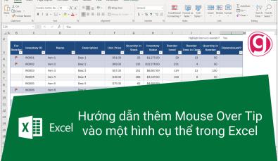 Trong nhiều trường hợp, bạn cần gán macro cho một hình cụ thể để có thể chạy macro bằng cách click vào hình trong trang tính của bạn. Sau khi gắn macro vào hình đó, thêm mouse over tip (xuất hiện nội dung gợi ý khi đưa chuột đến ô dữ liệu) để nhắc cho bạn...