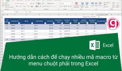 Chạy nhiều mã macro từ menu chuột phải với mã VBANếu có nhiều macro VBA trong tệp Excel thì việc chọn và chạy từng mã rất mất thời gian. Dưới đây Gitiho sẽ hướng dẫn cách để chạy nhiều lệnh macro từ menu chuột phải trong Excel.Để chạy mã macro trong...