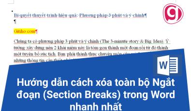 Rất dễ để chúng ta có thể chèn một ngắt đoạn và bắt đầu một phần mới. Nhưng bạn đã biết cách xóa toàn bộ các ngắt đoạn một cách nhanh chóng cho một tài liệu dài chưa. Dưới đây là một số mẹo cho bạn để bỏ ngắt đoạn trong word (Section Breaks)...