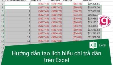 Trong bài này chúng ta sẽ cùng tìm hiểu cách tạo một lịch biểu chi trả dần (Loan Amortization Schedule) trên Excel.1. Chúng ta sẽ sử dụng hàm PMT để tính khoản phải trả hàng tháng cho khoản vay với lãi suất hàng năm là 5%. Trong thời hạn 2 năm và giá trị hiện...