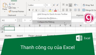 Khi mở Excel thì tab Home sẽ là tab mặc định được hiển thị đầu tiên. Trong bài này chúng ta sẽ tìm hiểu cách thu gọn và thay đổi thanh công cụ theo nhu cầu của mình.Các tabCác tab trên thanh công cụ bao gồm: File, Home, Insert, Page layout, Formulas, Data, Review, View...