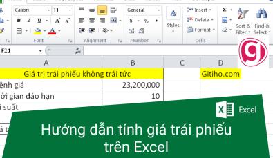 Trong bài này Gitiho.com sẽ hướng dẫn các bạn cách tính một số loại trái phiếu như: trái phiếu không trái tức, trái phiếu trả lãi hàng năm, trái phiếu trả lãi 2 lần một năm. Chúng ta có thể dễ dàng tính giá trái phiếu trên bằng công thức trên Excel một...