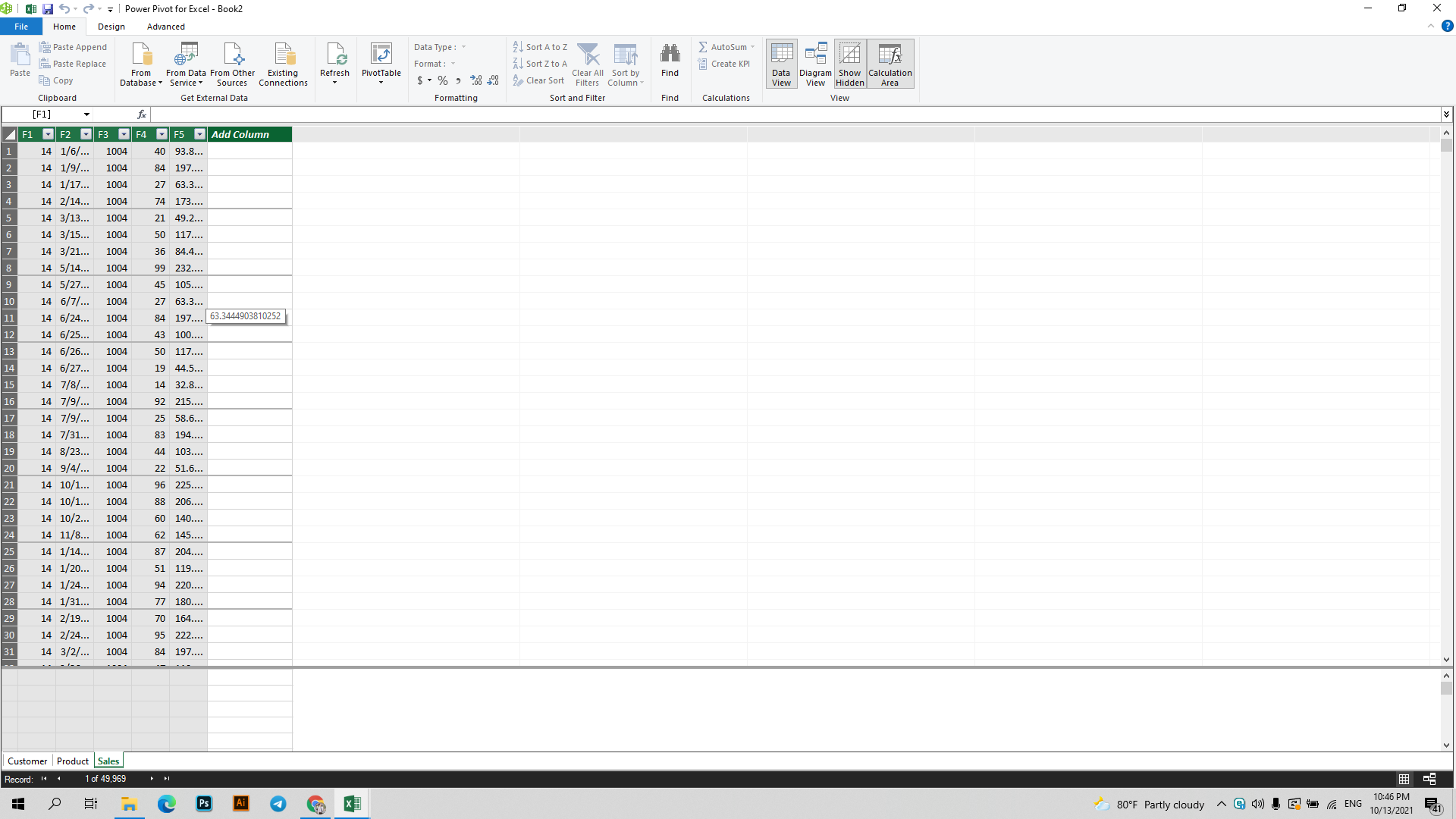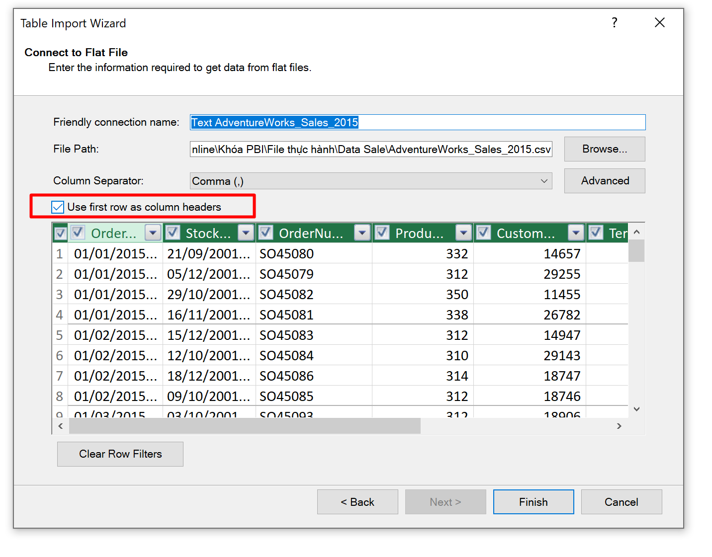 Cái này là bị mất Header, có thể khi Import dữ liệu bạn đã quên click vào Use first row as column headers