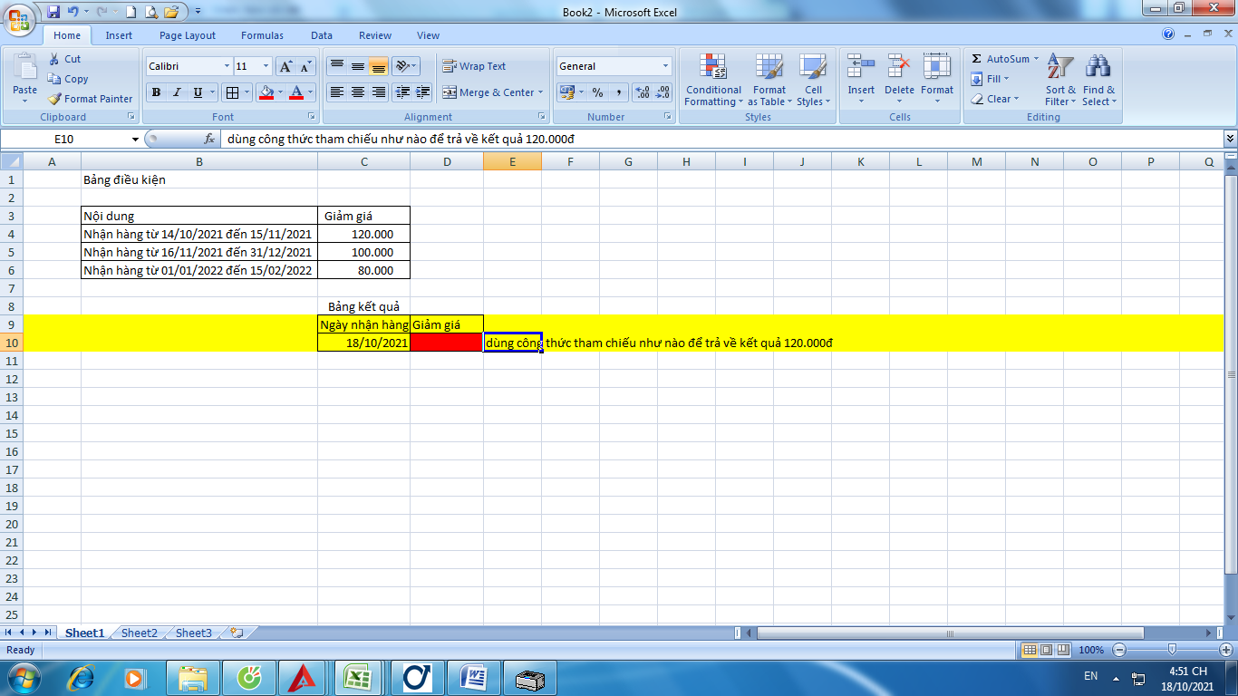 Xin chào chuyên gia, mình muốn làm ra ô kết quả thì dùng hàm nào phù hợp ạ! Chi tiết như bảng dưới sau ạ, chuyên gia có thể cho em hàm và cách nối để ra kết quả ở ô đỏ giảm giá được ko ạ! Em cảm ơn!