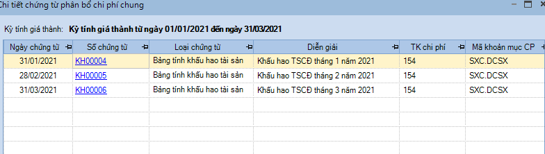 Chị ơi, như e tính giá thành quý 1 , chỗ khấu hao nó hiện vậy. Qua quý 2 thì chô khấu hao có tháng 04 ko? tháng 5 và 6 ko có ? làm sao để điều chỉnh trên misa ạ