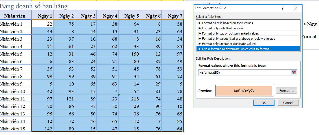 - Với Rule có ISFORMULA thì không có kết quả bởi không có ô nào chứa công thức. Ô chứa công thức phải bắt đầu với dấu bằng. Bạn kiểm tra lại xem các ô trong vùng này có ô nào có công thức không nhé.