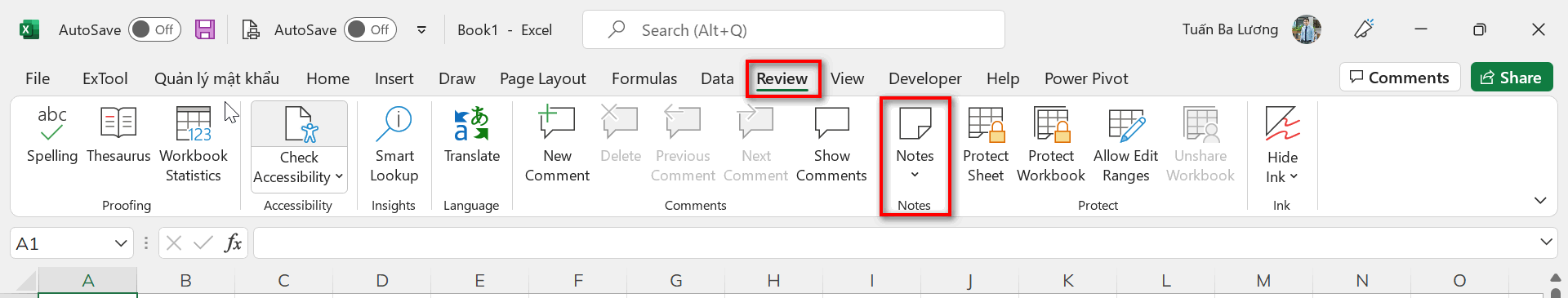 Chào bạn bạn đang sử dung phiên bản office nào nhỉ? các phiên bản office khác nhau sẽ có cách note hay comand bạn nhé, bạn thử ấn tổ hợp phím shift+f2 hoặc fn+shift+f2 nhé.