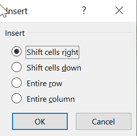 chèn sang phải chèn xuống duối hoặc chèn cả dòng cả hàng bạn nhé.