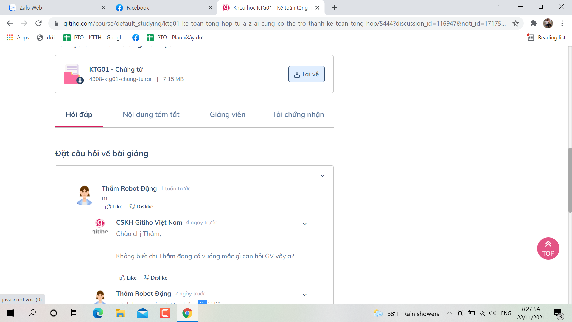 Không biết chị Thắm đang có vướng mắc gì cần hỏi GV vậy ạ?