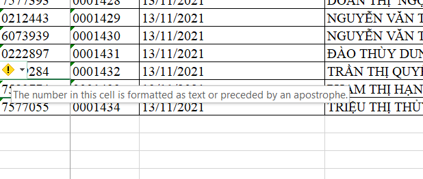 Chào bạn đây không phải là lỗi bạn nhé, excel đang hỏi bạn định dạng bạn nhập vào là số hay number bạn có muốn chuyển đổi không thôi