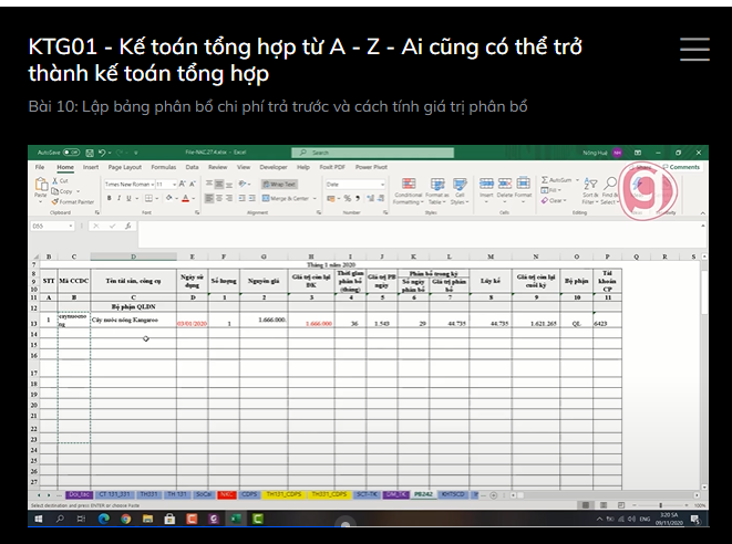 242 mình lấy nguyên giá để tính phân bổ nhưng sao bảng tính chi phí phân bổ em thấy bài giảng cô tính nguyên giá là có luôn cả VAT vậy cô. ( 1666000đ)