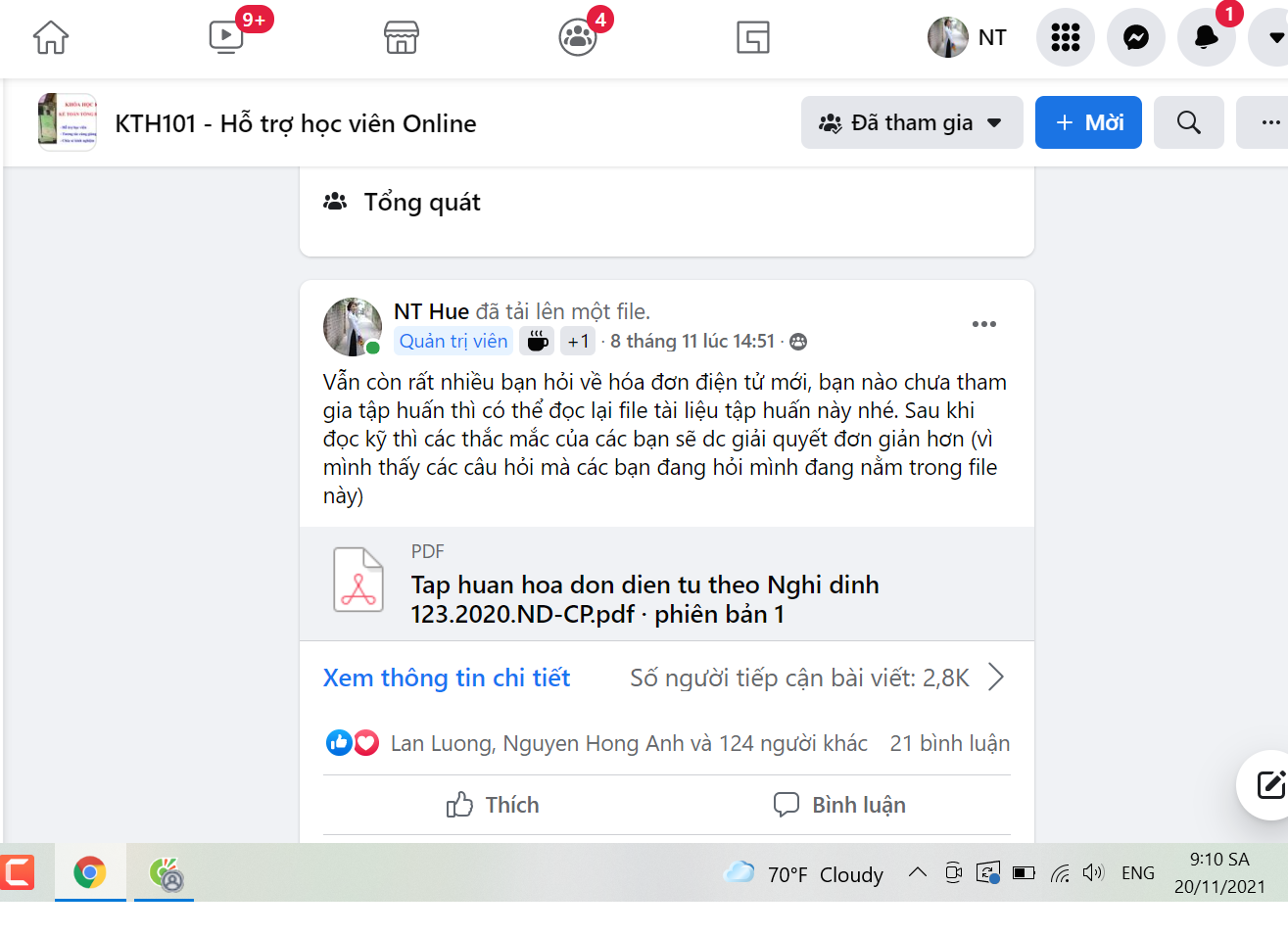Cô ơi, tuần trước e có vào FB thấy cô có up file pdf về nd là những lưu ý về hoá đơn điện tử theo quy định mới nhưng do bận quá e chưa kịp tải về giờ e tìm lại ko thấy. Nhờ cô gửi lại giúp e ạ. E cảm ơn Cô