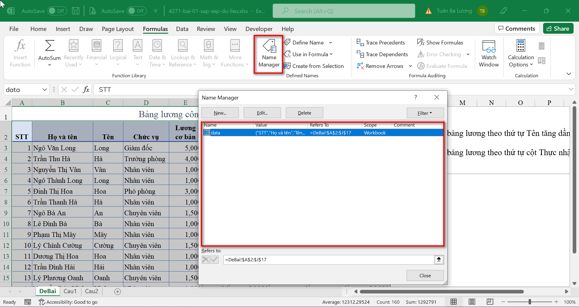 Em xin lỗi nhưng mà "Name" ở đâu vậy ạ? Em có bấm vào ô hiện tất cả tên được đặt nhưng nhấp chuột phải không ra, chỉ hiện các vùng của tên đó thôi ạ. Mong thầy chỉ giúp em.