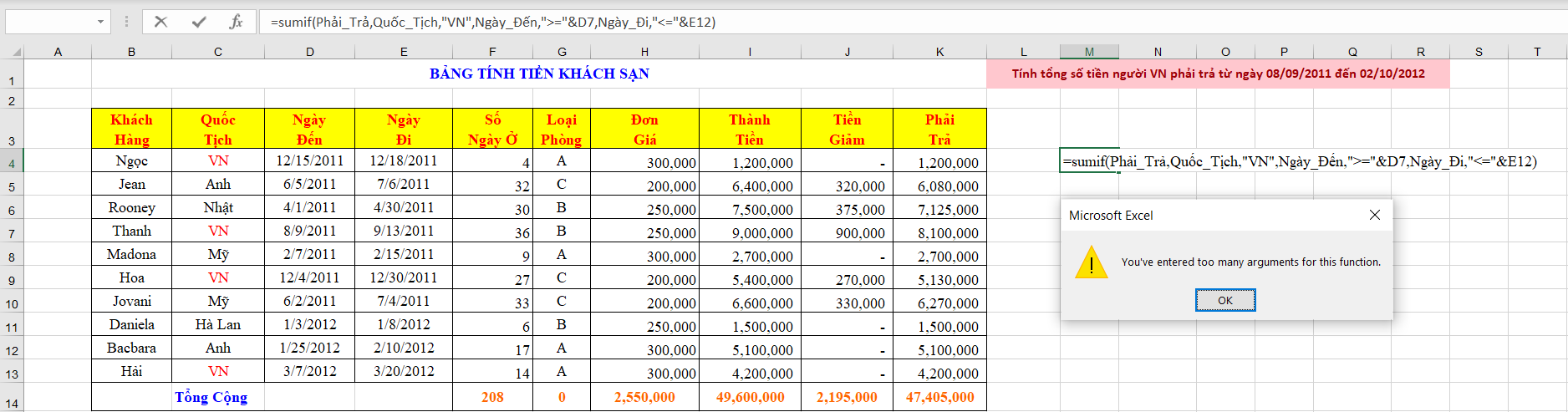 Chào bạn bạn cần sử dụng hàm làm sumifs nhé, hàm sumif chỉ thực hiện với 1 điều kiện thôi.