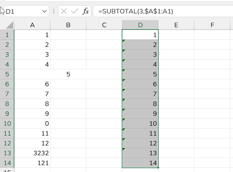 cách đánh số ở trong 1 dãy mà có gộp ô thì làm như thế nào ạ