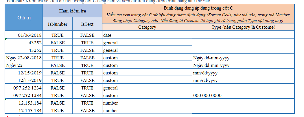 dạ e hiểu cách làm hàm isnumber và istext rồi nhưng phần category và type lamg như thế nào để hiện ra hay mình nhập vào ạ