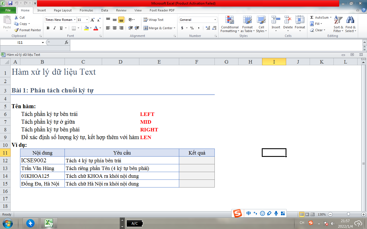 Bài Hàm xử lý dữ liệu Text chỉ có duy nhất một trang Bài 1 này. Còn những phần khác đâu ạ?