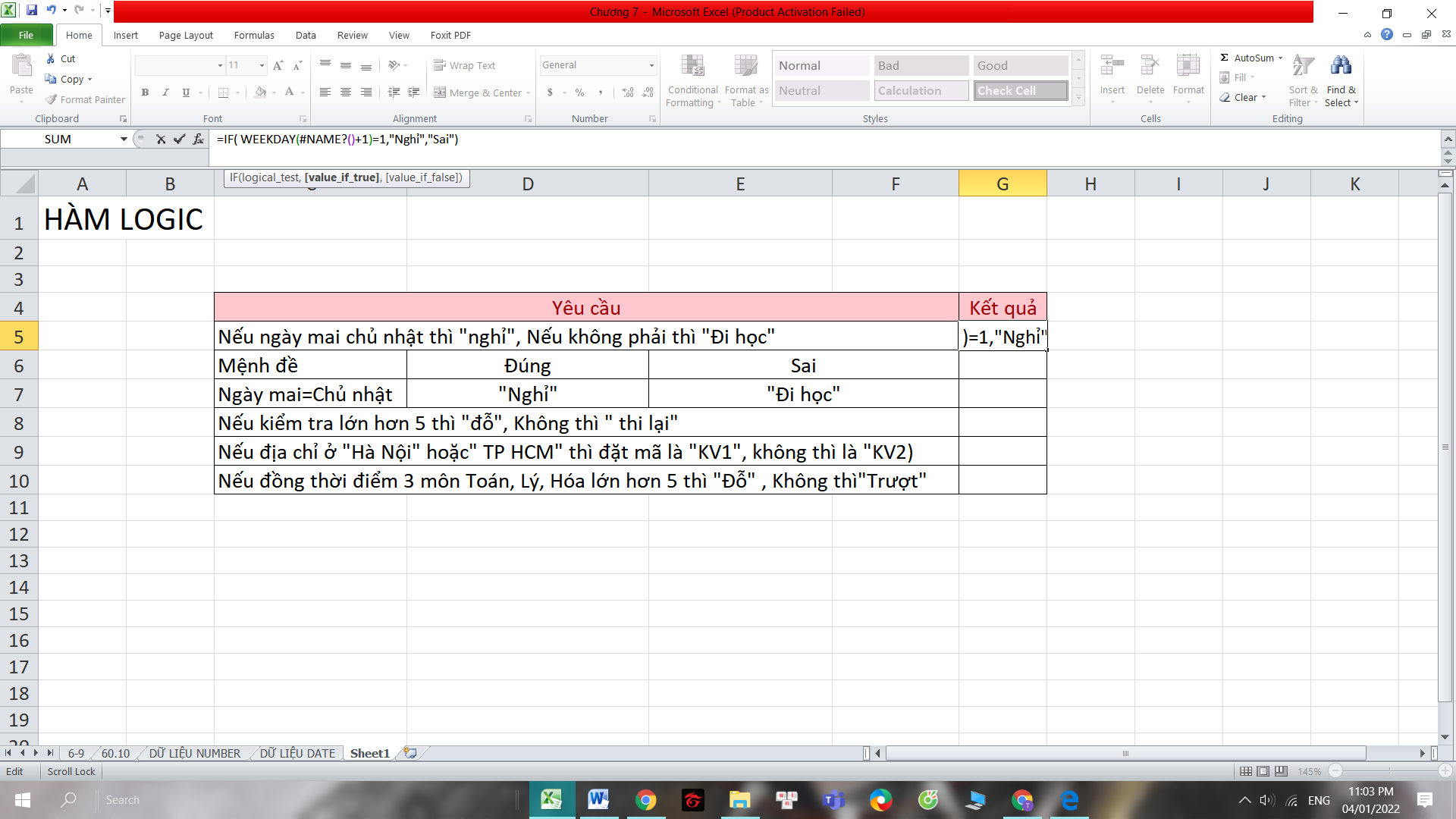 Bạn phải bôi đen cả hàm today kèm theo dấu ()