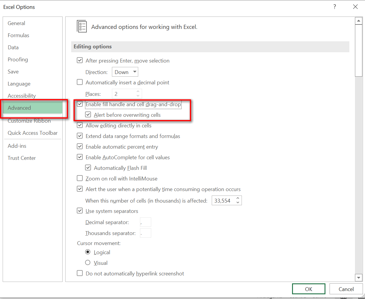 Làm sao để xuất hiện dấu + để kéo số thứ tự hoặc copy ạ?