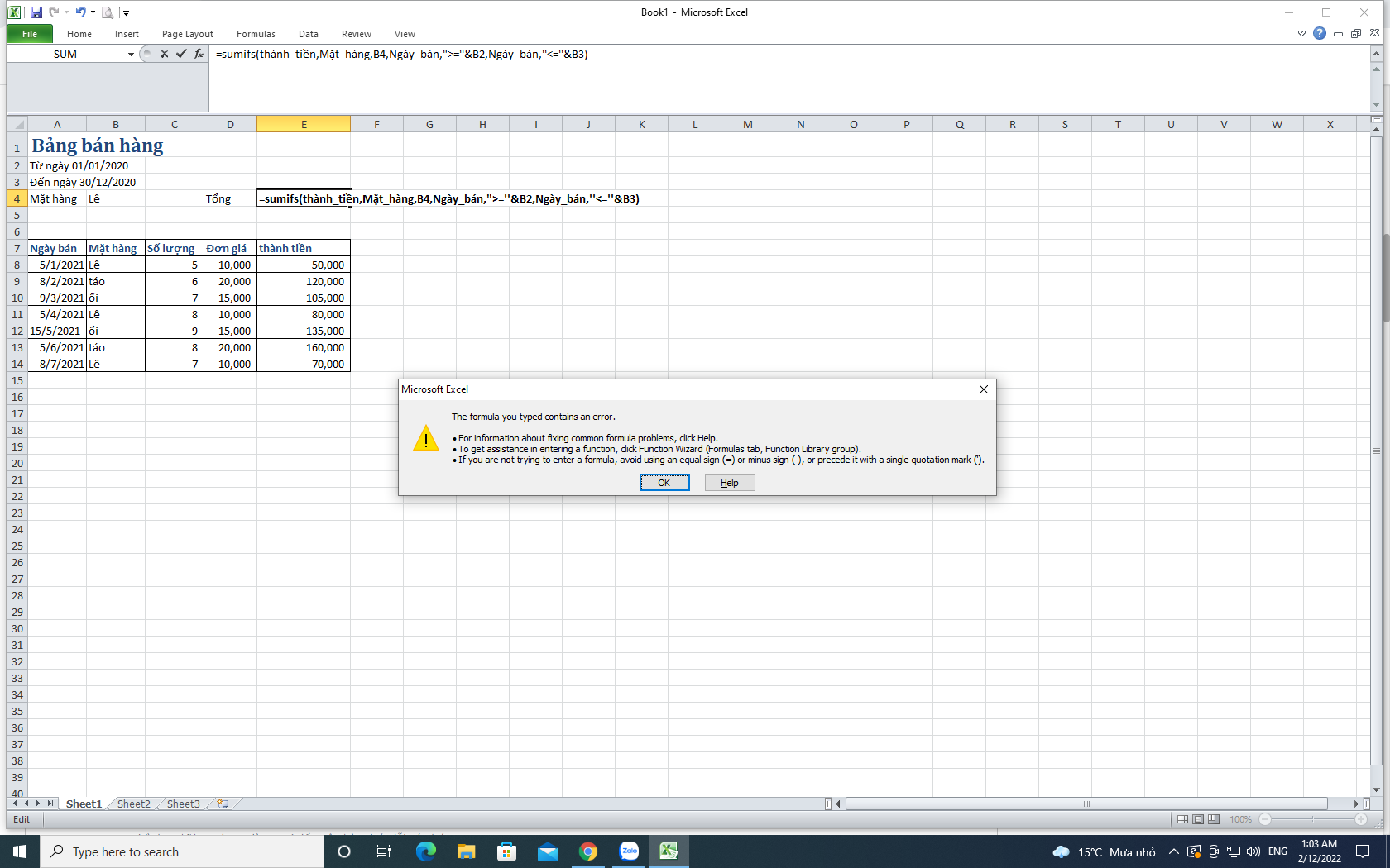 Thầy, cô cho em hỏi khi em tính máy báo lỗi như vậy là sao ạ