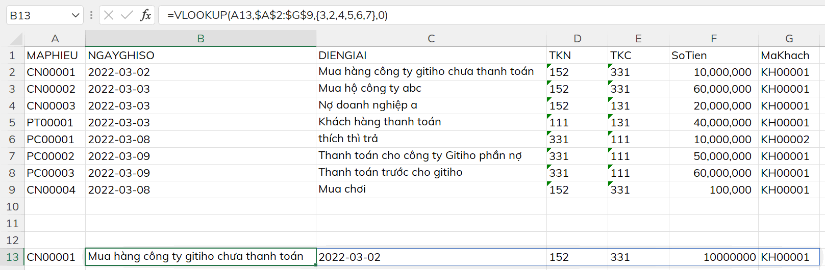 Làm sao dùng hàm để trích xuất ra 3 giá trị tương ứng với ô G2 và vùng dữ liệu bên cạnh ạ?