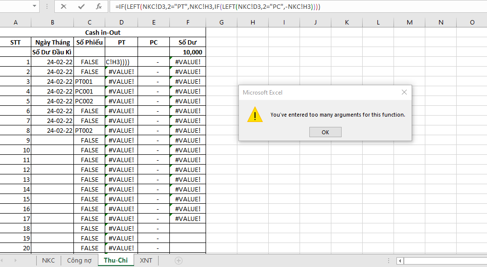 MÌnh đang làm một bảng tính thu - chi cho hộ kinh doanh nội thất muốn chạy công thức:
