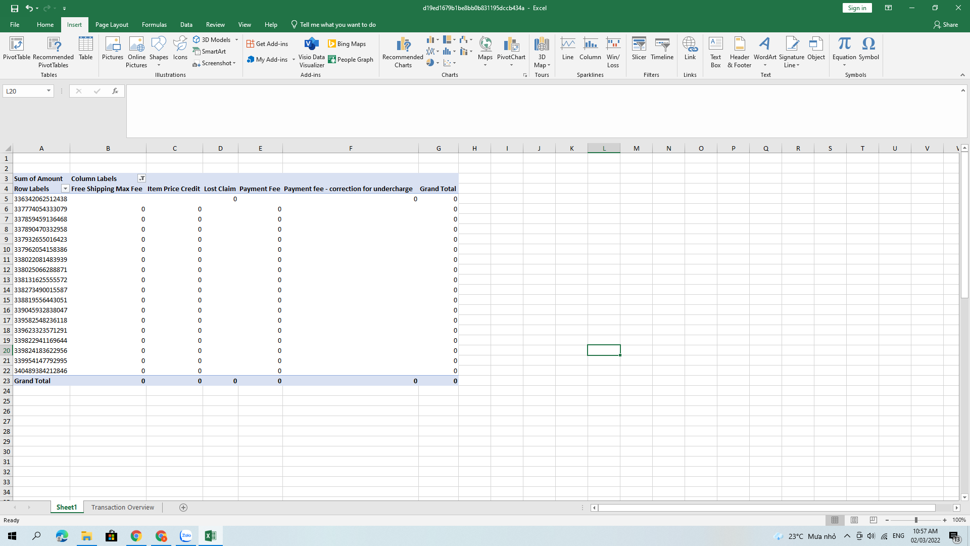 thầy cho e hỏi e dùng pivotTable nhưng k giá trị, e tải bảng lên thầy xem giúp e ạ