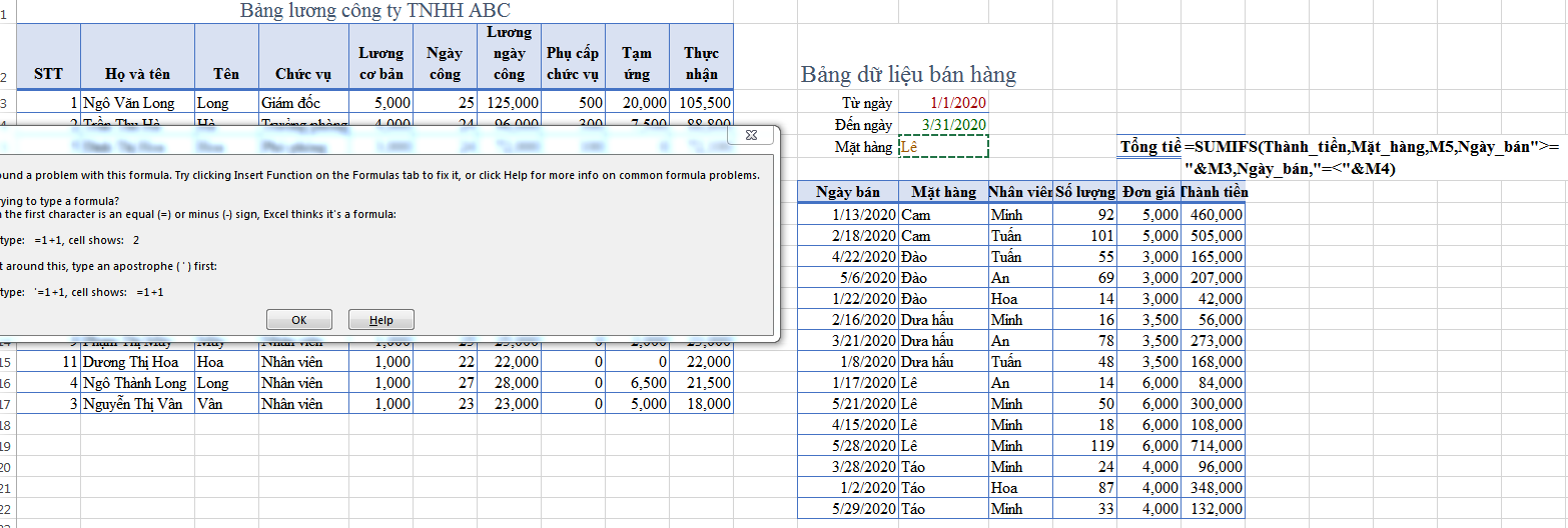 2. Công thức bạn sử dụng Name_range. Cần xem lại các vùng tên đã chính xác chưa, độ lớn các vùng tên có bằng nhau không.