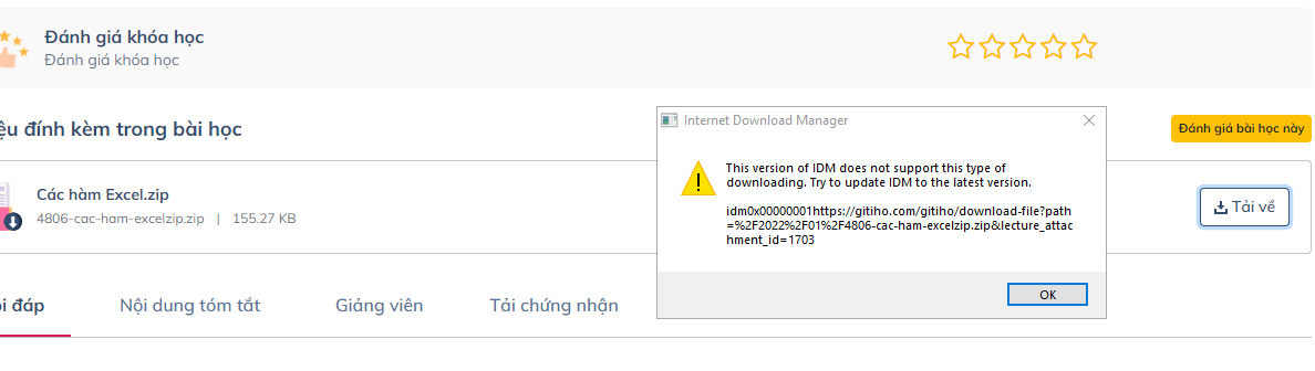 Bạn gỡ cài đặt phần mềm IDM trong máy của bạn (Phần mềm hỗ trợ download) bởi nó đã không còn hoạt động được nữa => ảnh hưởng tới việc download của bạn.