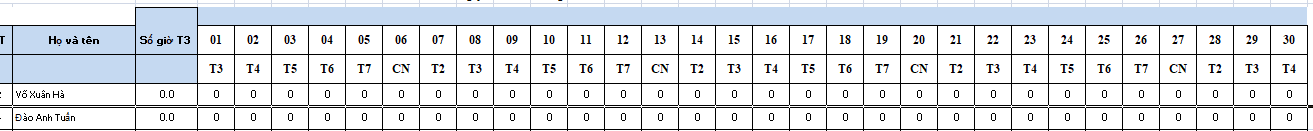Chào bạn giờ bạn phải chuyển bảng sang kiểu chuẩn, bạn sẽ lấy mã nhân viên(duy nhất) > rồi vlookup lấy theo giá trị thêm giờ từng tháng rồi mới tổng hợp được như video trên