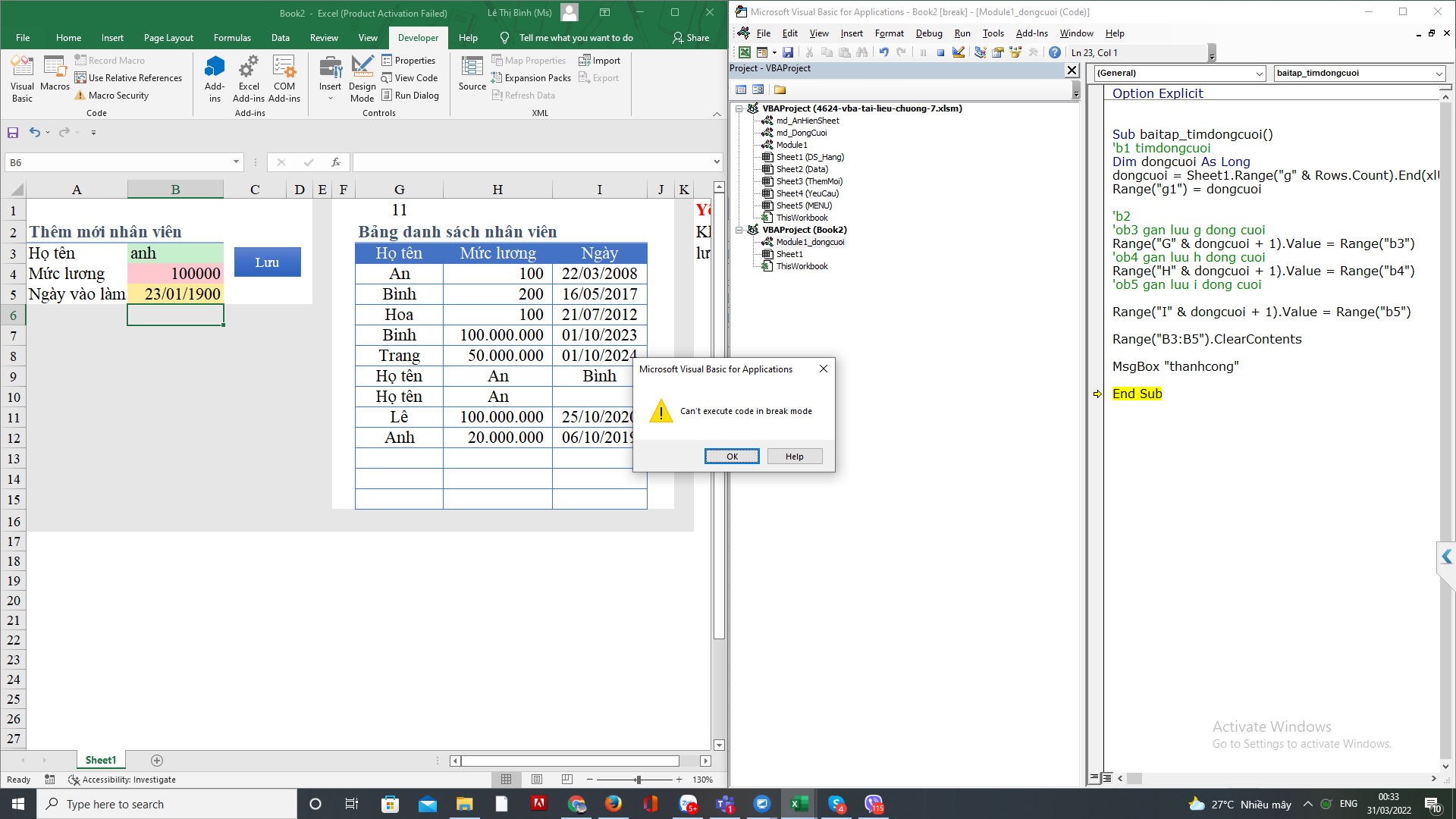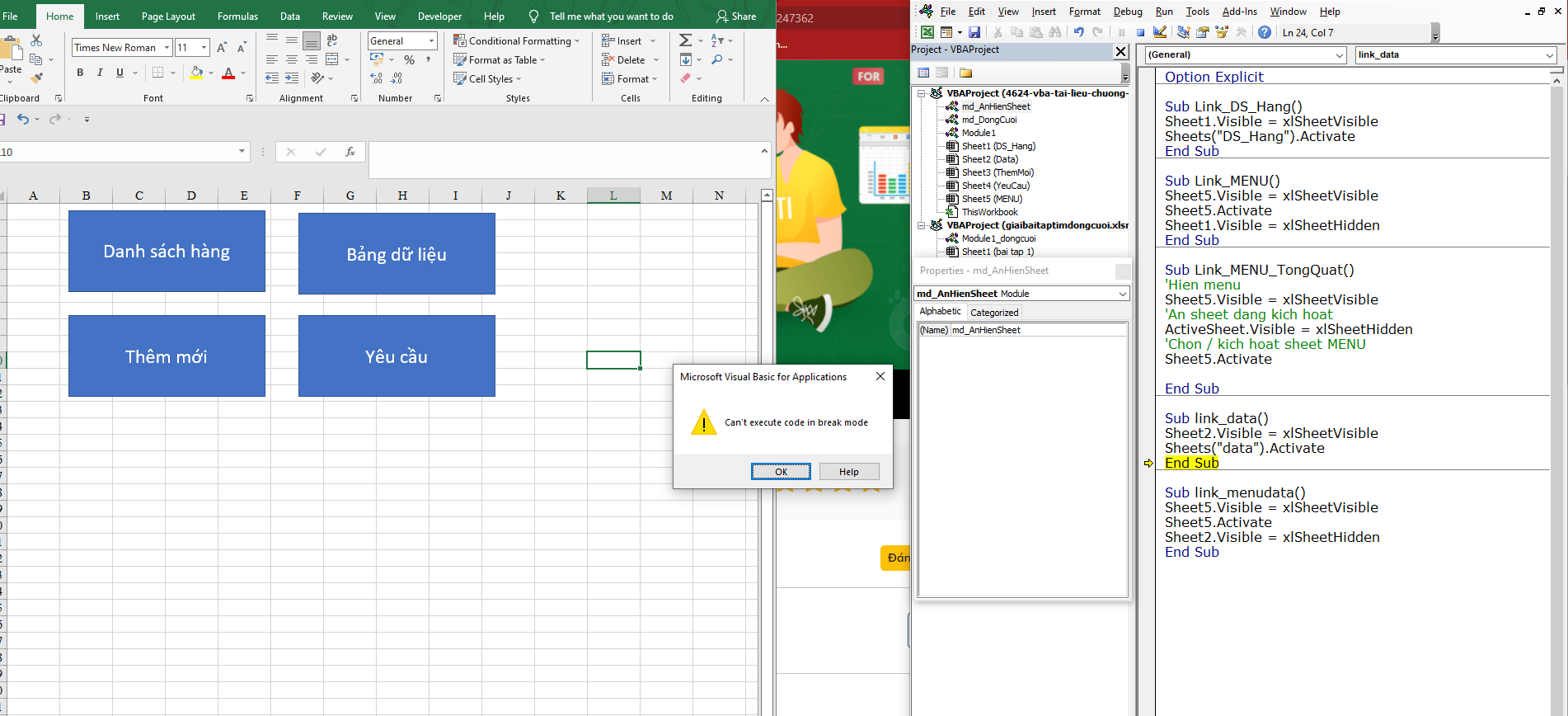 Thầy ơi cho e hỏi, e bị lỗi này khi bấm nút lưu. e đang bấm vô assign macro ạ