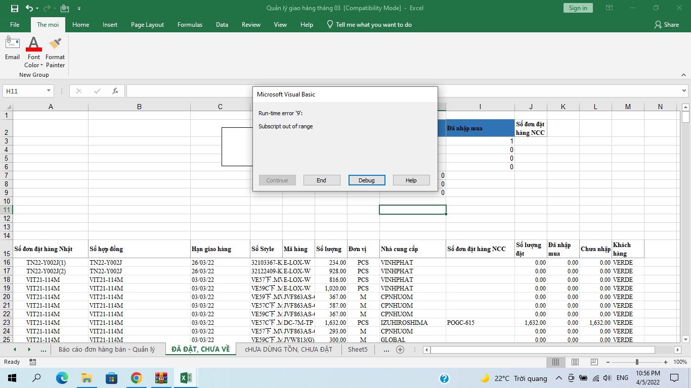 Em đã insert macro trong vba cập nhật nhưng lại hiển thị lỗi này ạ