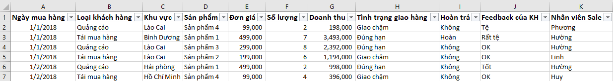 nếu dữ liệu của mình bị như thế nàyHình 1Thì mình nhấn tổ hợp phím