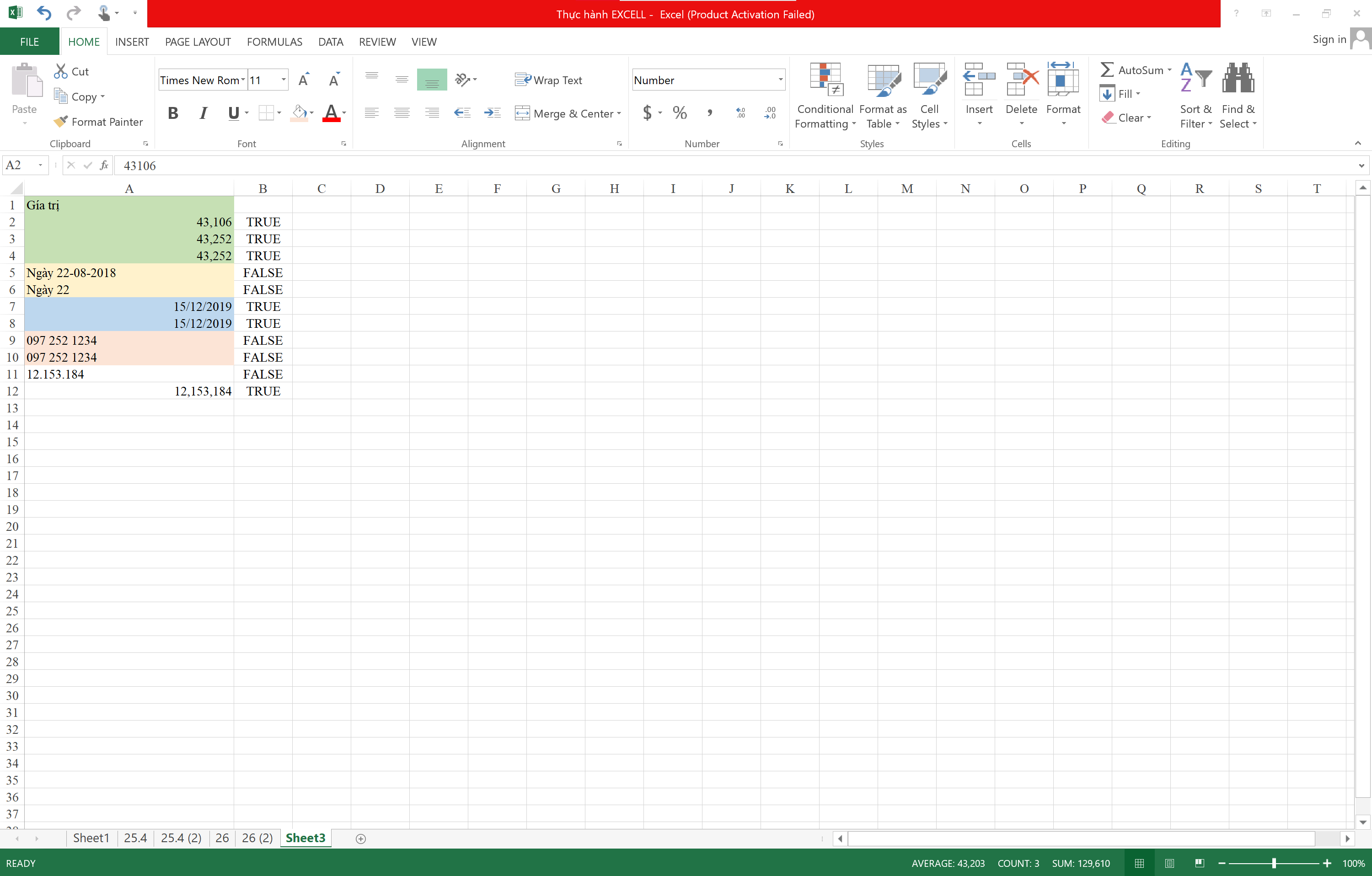 Bạn dùng hàm isnumber kiểm tra dữ liệu thì đúng rồi.