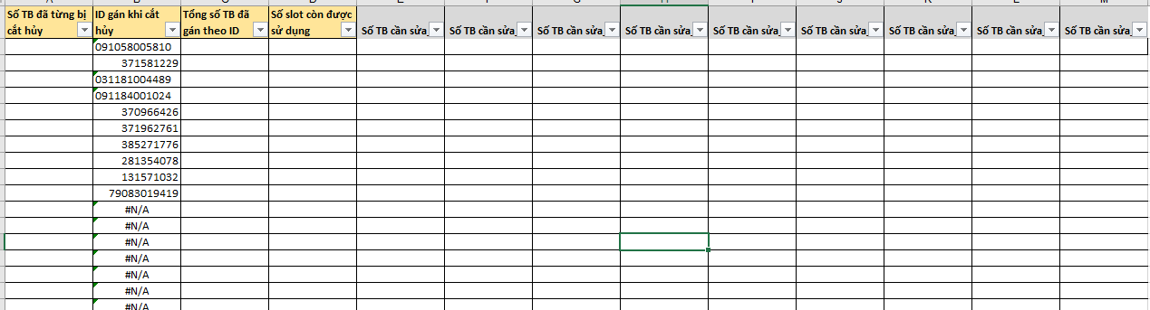 Nhờ thầy hướng dẫn giúp em trường hợp này ạ, em có DS số ID (cột A - sheet data, mỗi ID đó được phép gán tối đa với 9 số điện thoại trên cột B - sheet data).