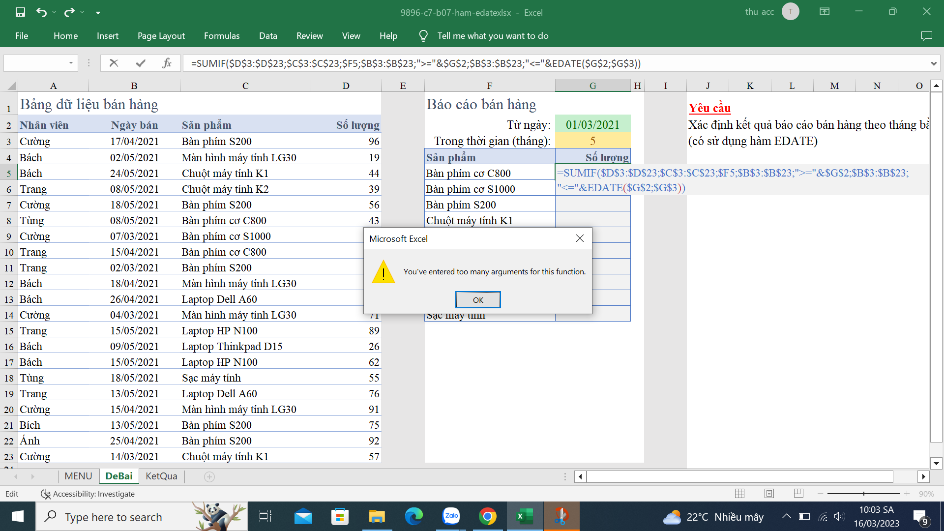 Chào bạn do bạn viết thừa điều kiện bạn nhé, chỉ cần so sánh ngày bán với edate là xong