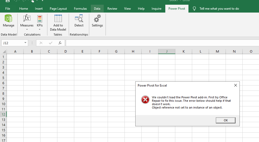 Nếu anh/chị gặp lỗi không thể load Power Pivot Add-in khi vào Tab Power Pivot và chọn "Manage", có thể lý do là do Add-in không được cài đặt hoặc có một số vấn đề kỹ thuật khác. Dưới đây là một số bước để anh/chị có thể thử sửa lỗi này: