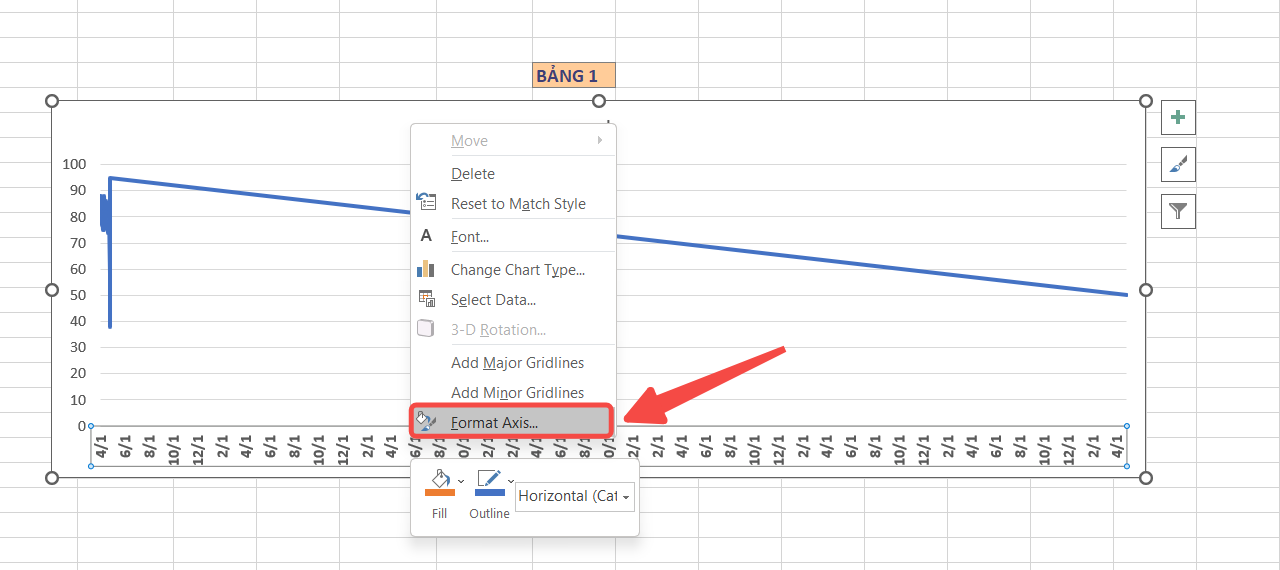 Bước 1: Tại Axis (trục) nằm ngang đó click chuột phải. Sau đó lựa chọn Format Axis