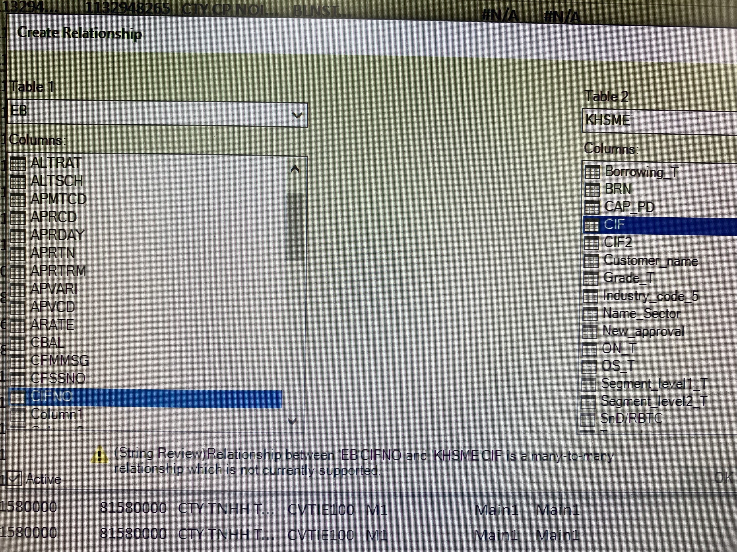 excel báo là: relationship is a many to many relationship which ís not currently supported