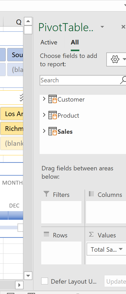 Theo hướng dẫn của bài học, chỉ cần vào “All” ở bên cạnh “Active” là có sẵn “Calendar”. Nhưng máy/ excell của mình mở mục"All" cũng không có Calendar & giống hệt với “Active” chỉ có 3 mục Customer-Product-Sales