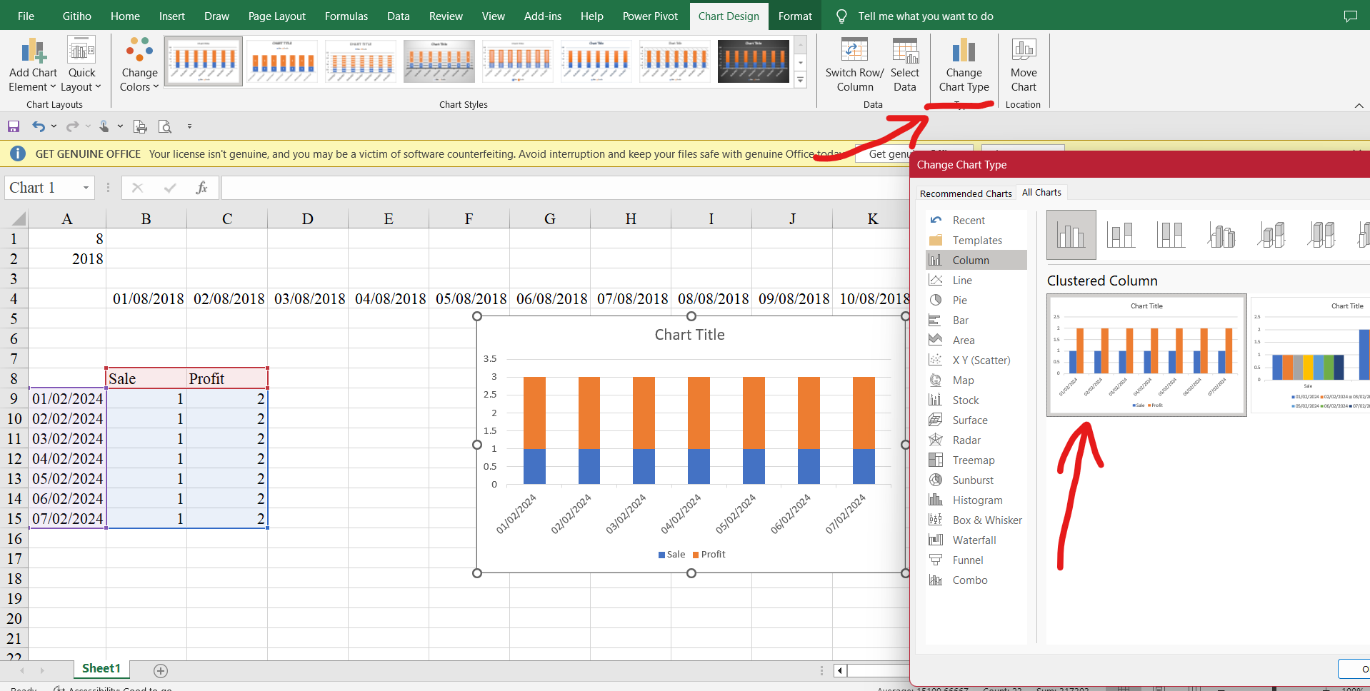 Dạ vâng Anh/Chị vui lòng chọn biểu đồ. Chọn vào Change Chart Type và chọn lại biểu đồ ạ