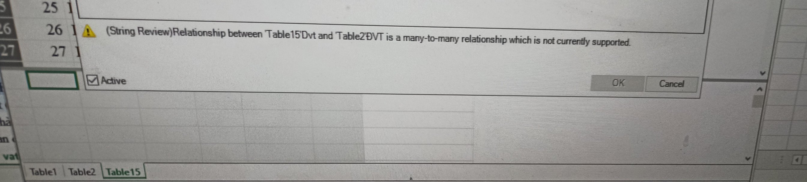 Nó đang bị mối quan hệ Many-to-Many giữa 2 bảng, nghĩa là trường làm key kết nối đều là giá trị lặp đi lặp lại chứ không có bảng nào mà cột làm key chứa giá trị dạng unique. Khi kết nối cần kết nối dạng Many-to-One, 1 bảng data chứa giá trị ở cột key lặp đi lặp lại được, nhưng 1 bảng data thì cột key phải chứa giá trị unique nha b