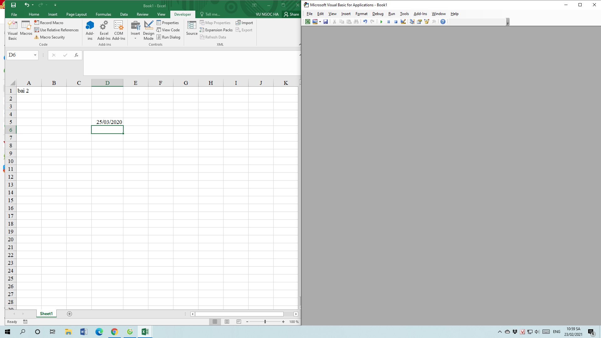 Chào thầy, em đã làm theo thao tác thầy dạy, kích vào visual basic nhưng không ra màn hình như thầy hướng dẫn
