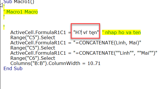 Cách giải quyết là bạn gắn giá trị text này trong 1 ô tại Excel. Sau đó bạn viết dưới đạng tọa độ ô trong VBA