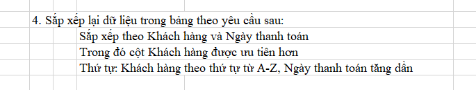mình chưa hiểu yêu cầu sắp xếp theo thứ tự KHÁCH HÀNG và NGÀY THANH TOÁN.