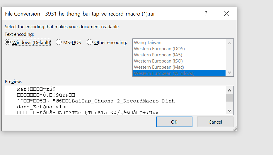 file tài liệu bài tập có phải đổi lại đuôi không thầy ơi, nó báo lỗi định dạng font chữ thì phải?