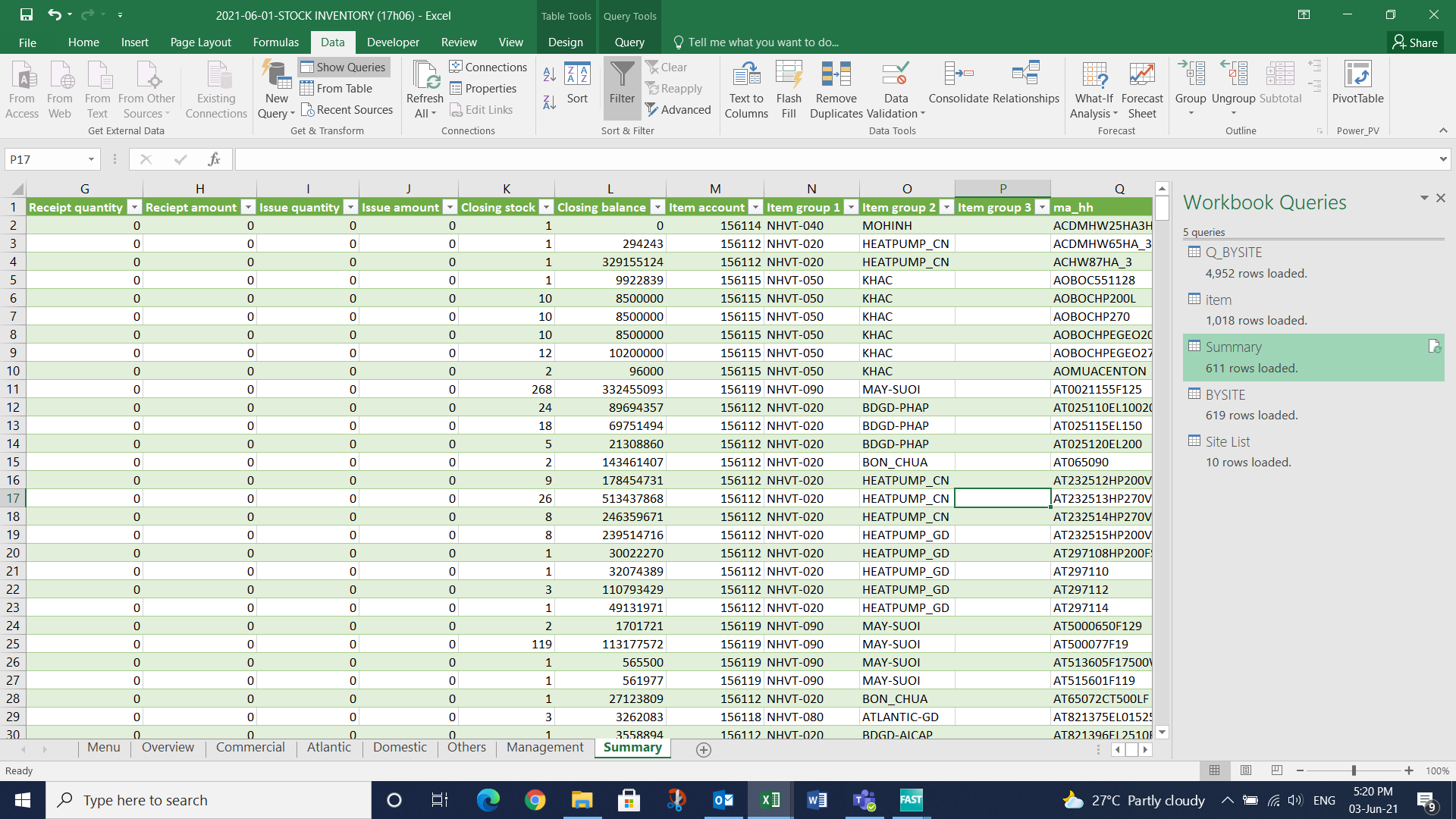 Chào Thầy. Đôi khi trong Excel mọi ngày vẫn làm việc bình thường, bỗng dưng queries load lên không đủ dòng là tại sao vậy ? Trong hình Workbook "Summary" gốc có 620 dòng ( không phải 611 dòng như trong hình) ; Refresh hoài vẫn không lên ? Có cách nào khắc phục không ? Học viên cảm ơn ạ.
