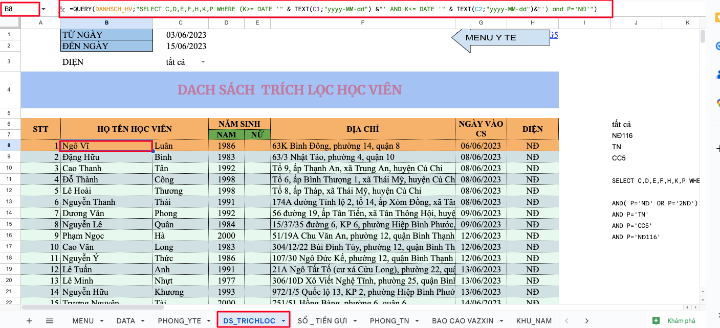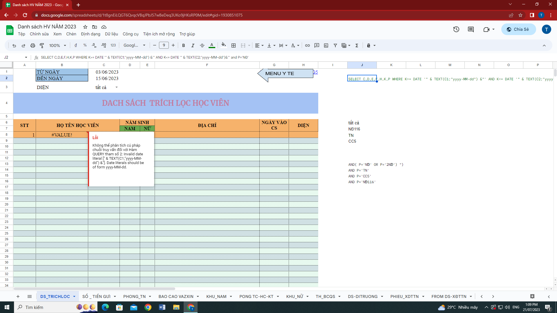 = QUERY( DS_HV; K2) NP1 BÁO LỖI VALUE