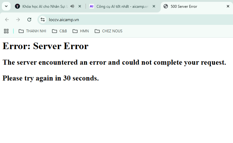 Dạ thầy ơi, Em dùng công cụ “Sàn lọc CV bằng AI” thì liên tục bị báo lỗi ạ.